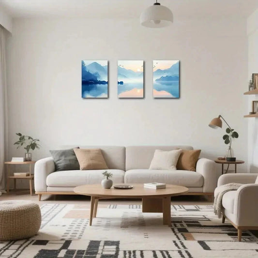 3pcs Serene Mountain & Water Landscape Soft Pastel Metal Print Ready to Hang Art