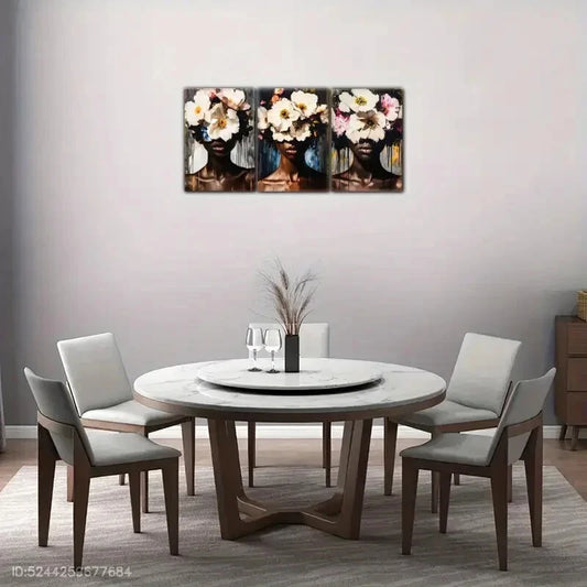 3pcs Minimalist African Woman & Floral Design Metal Print Ready to Hang Art