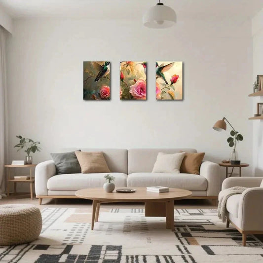 3pcs Abstract Hummingbirds & Floral Painting Metal Print Ready to Hang Art