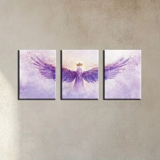 3pcs Vibrant Purple Beautiful Angel Wings Metal Print Ready to Hang Art
