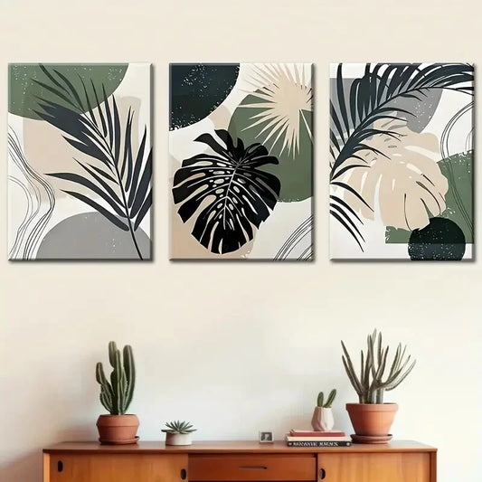 3pcs Abstract Botanical Design Plant Leaf Metal Print Ready to Hang Art