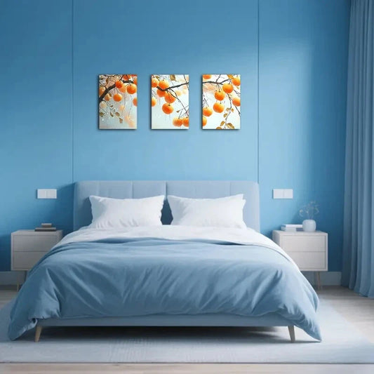 3pcs Vibrant Orange Pears & Green Leaves Nature Metal Print Ready to Hang Art