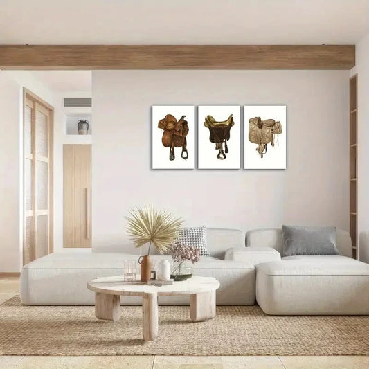 3pcs Horse Riding Saddle Saddle Decoration Metal Print Ready to Hang Art