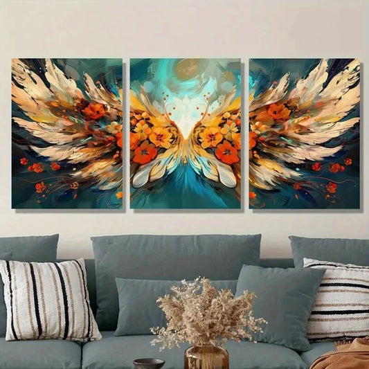 3pcs Abstract Angel Wings Art in Oil Painting Metal Print Ready to Hang Art