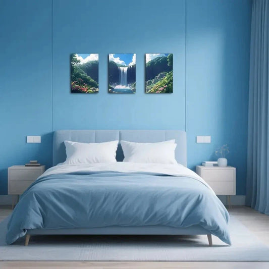 3pcs Serene Waterfall & Floral Landscape Metal Print Ready to Hang Art