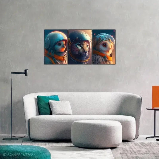 3pcs Astronaut Owl Cheetah Animal Portrait Art Metal Print Ready to Hang Art