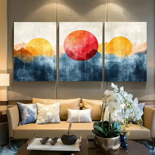 3pcs Contemporary Striped Wall Art Abstract Metal Print Ready to Hang Art
