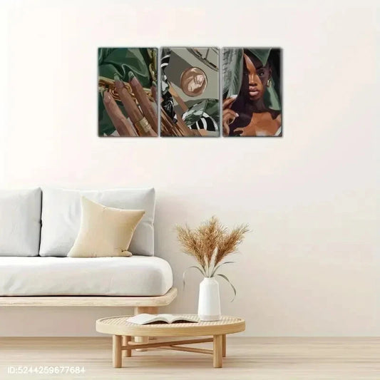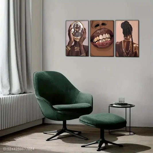3pcs African American Art Exquisite Female Metal Print Ready to Hang Art