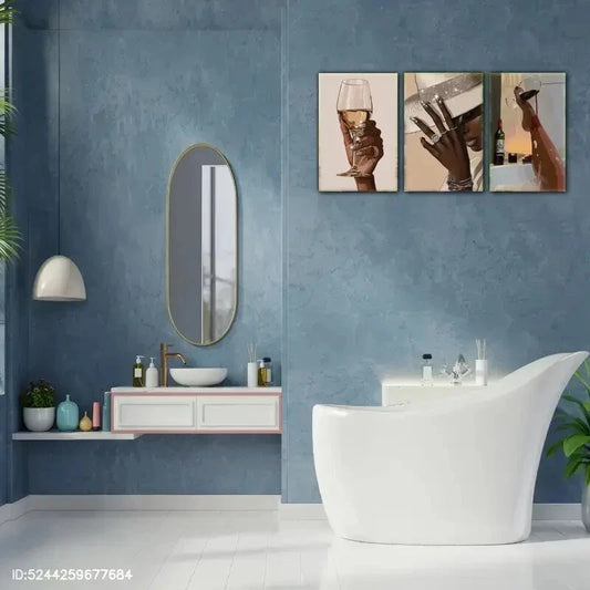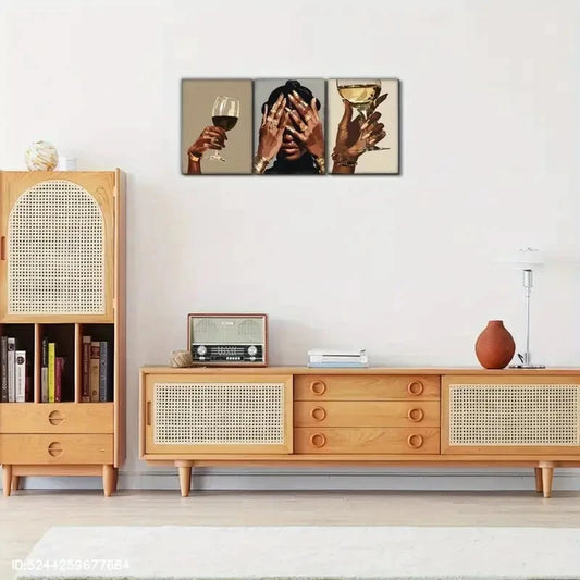 3pcs Elegant Wine Glass Fashionable Hat Metal Print Ready to Hang Art