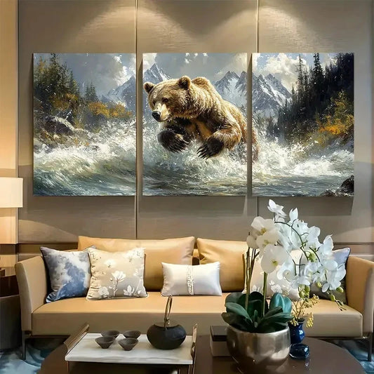 3pcs Majestic Mountains Grizzly Bear Fishing Metal Print Ready to Hang Art
