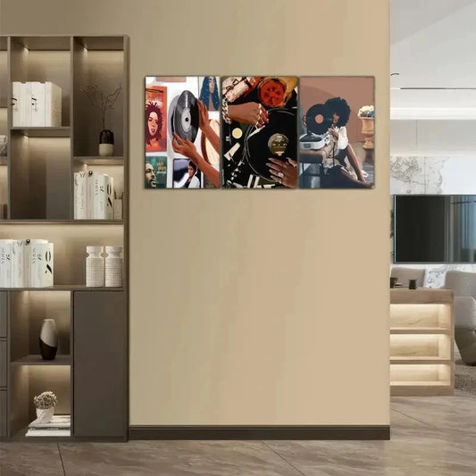 3pcs Vintage Records Music Art Black Girl Art Metal Print Ready to Hang Art
