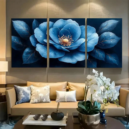 3pcs Elegant Blue and White Flower Metal Print Ready to Hang Art