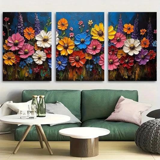 3pcs Vibrant Wildflower Meadow Garden Bloom Metal Print Ready to Hang Art