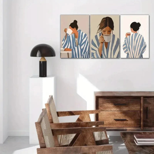 3pcs Exquisite Female Portrait Art Poster Metal Print Ready to Hang Art