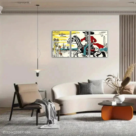 3pcs Skull Cowboy Art Print Yellow Blue Red Metal Print Ready to Hang Art