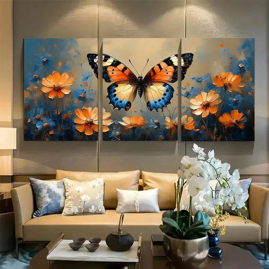 3pcs Vibrant Nature-Inspired Butterfly & Floral Metal Print Ready to Hang Art
