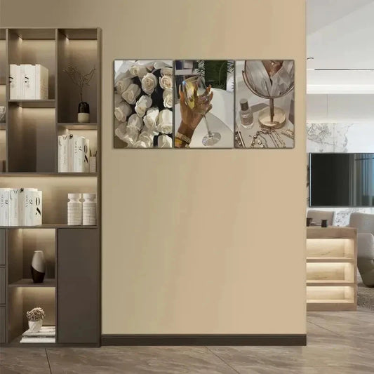 3pcs Golden Jewelry Art Poster Modern Art Style Metal Print Ready to Hang Art