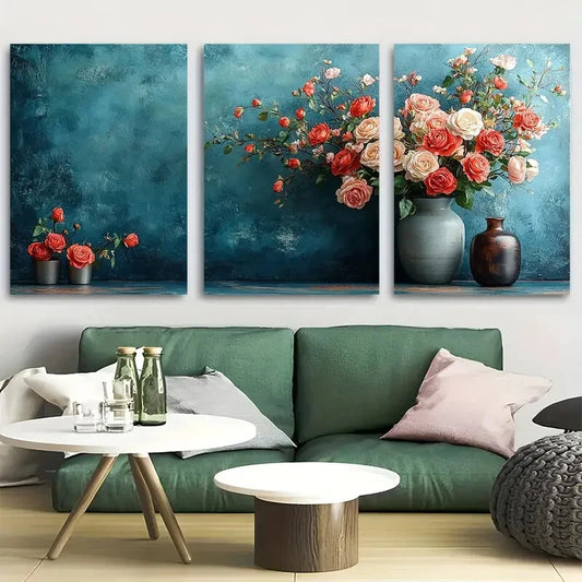 3pcs Romantic with Vase of Roses Metal Print Ready to Hang Art