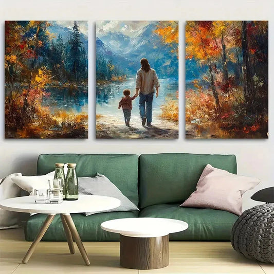 3pcs Man Holding Child Peaceful Walk Metal Print Ready to Hang Art
