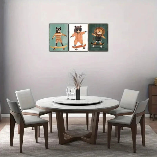 3pcs Dog Brown Bear Lion Skateboard Wall Metal Print Ready to Hang Art
