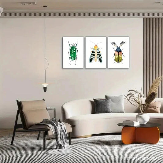 3pcs Expression Blue Winged Bug Art Print Metal Print Ready to Hang Art