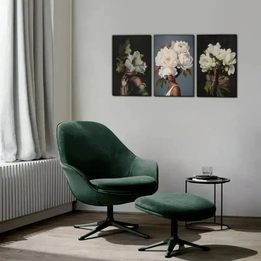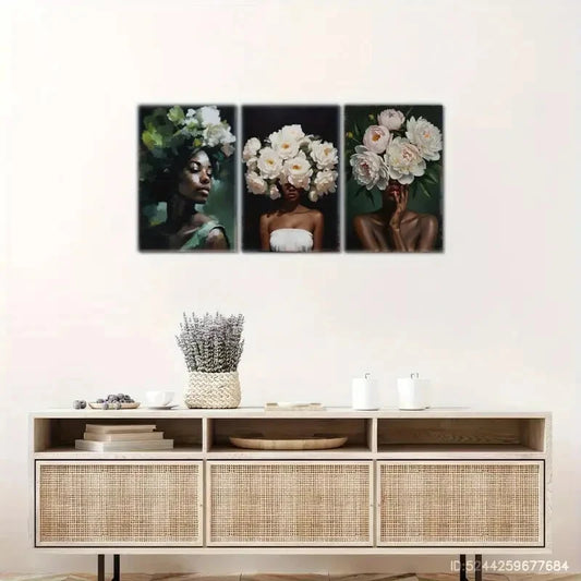 3pcs Exquisite Portrait Art Posters Floral Metal Print Ready to Hang Art