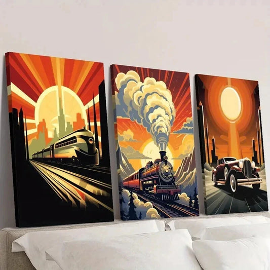3pcs Steam Age & Industrial Cars & Trains Wall Art Set Canvas Framed 40x60cm - High Quality Print 100% Australian Made Wall Canvas Ready to Hang