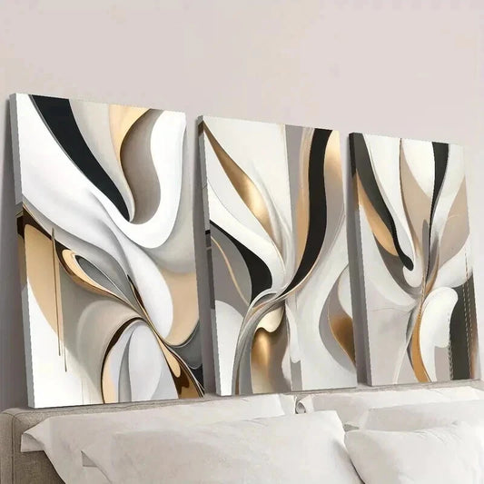 3pcs Gold and White Luxury Line Painting Wall Art Set Canvas Framed 40x60cm - High Quality Print 100% Australian Made Wall Canvas Ready to Hang