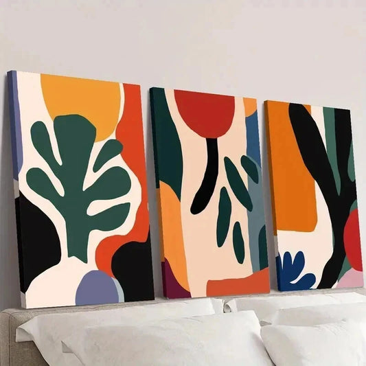 3pcs Simple Color Block Leaf Painting Wall Art Set Canvas Framed 40x60cm - High Quality Print 100% Australian Made Wall Canvas Ready to Hang