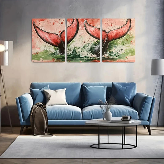 3pcs Summer Whale Tails Splashing Updo Style Metal Print Ready to Hang Art