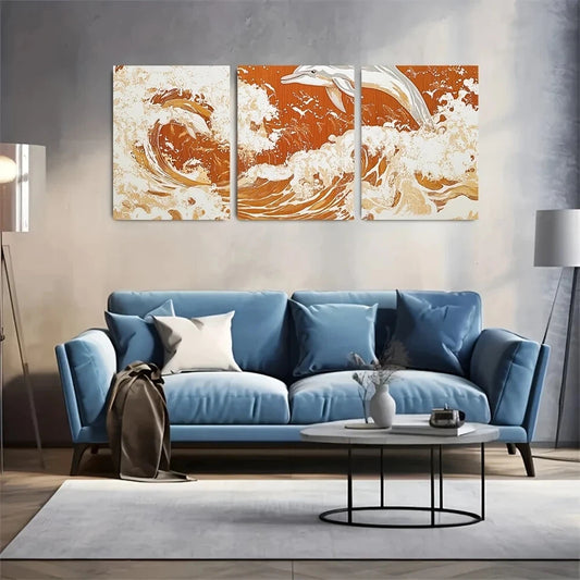 3pcs Summer Dolphins Breaching Waves Metal Print Ready to Hang Art