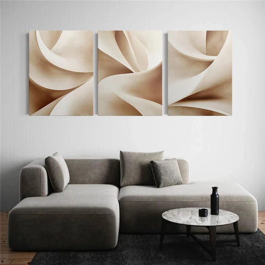 3pcs Beige Abstract White Brush Strokes Metal Print Ready to Hang Art