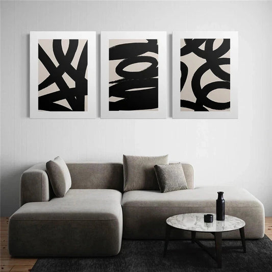 3pcs Modern Geometric Abstract Black & Beige Metal Print Ready to Hang Art