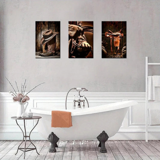3pcs American West Rodeo Cowboy Metal Print Ready to Hang Art