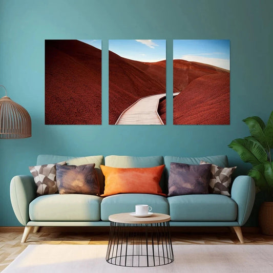 3pcs Red Desert Nature Blue Sky White Clouds Metal Print Ready to Hang Art