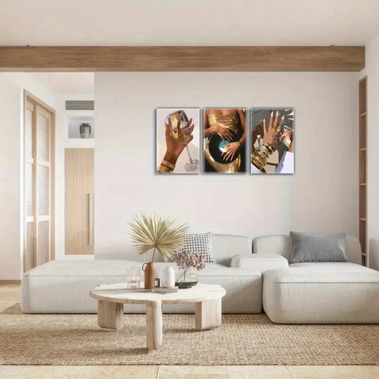 3pcs Beautiful Female Portrait Art Posters Luxury Metal Print Ready to Hang