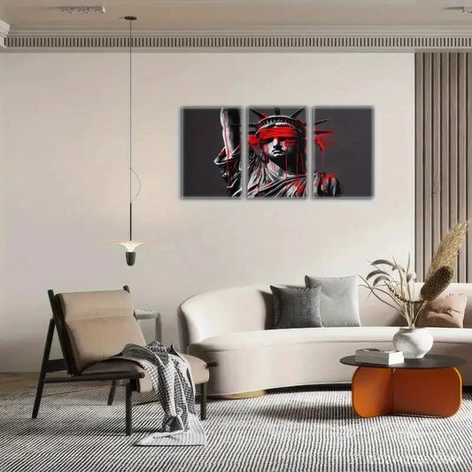 3pcs Statue of Liberty Wearing a Blood-Stained Eye Metal Print Ready to Hang