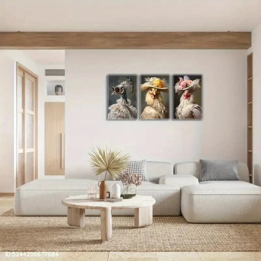 3pcs Noblewoman Peacock Chicken Royal Animal Metal Print Ready to Hang Art