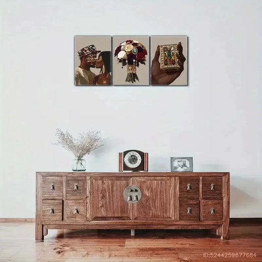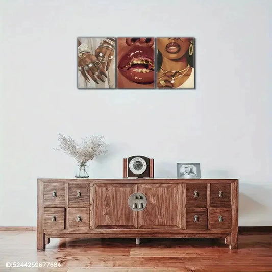 3pcs Elegant Black Couple & Luxurious Jewelry Metal Print Ready to Hang Art
