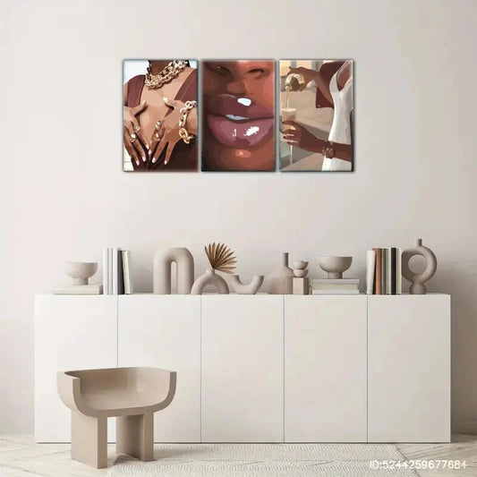 3pcs Touch of Sophistication Black Girl Art Metal Print Ready to Hang Art