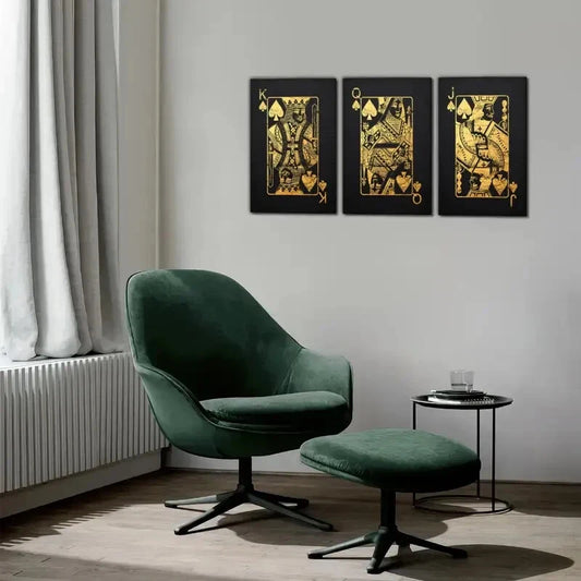 3pcs Elegant Black & Golden Playing Card Art Metal Print Ready to Hang Art