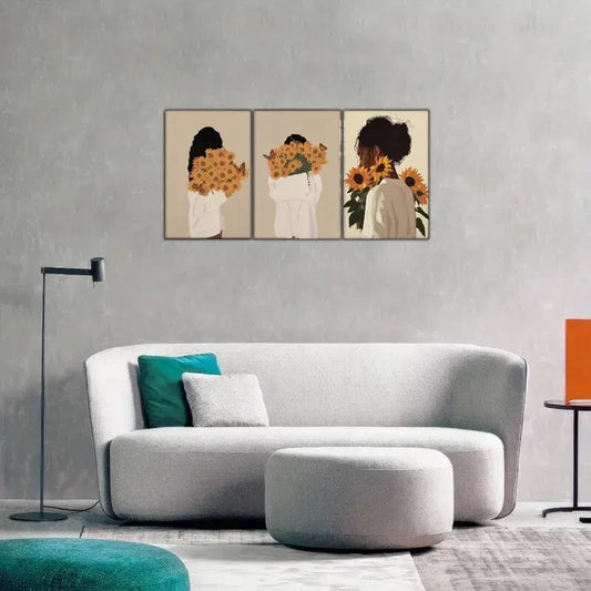 3pcs Featuring African Female a Sunflower Design Metal Print Ready to Hang Art