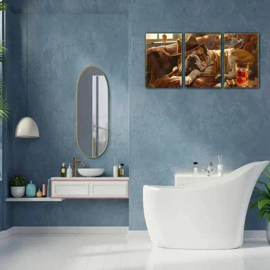3pcs English Bulldog Illustrations Humorous Dog Metal Print Ready to Hang Art