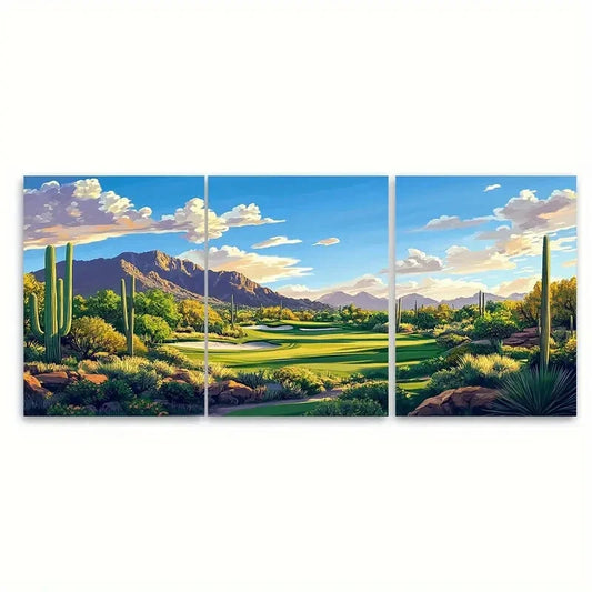 3pcs Vibrant Green Fairways & Cacti Metal Print Ready to Hang Art