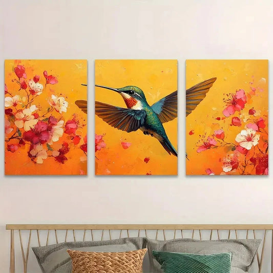 3pcs Vibrant Tropical Hummingbird & Florals Design Metal Print Ready to Hang Art