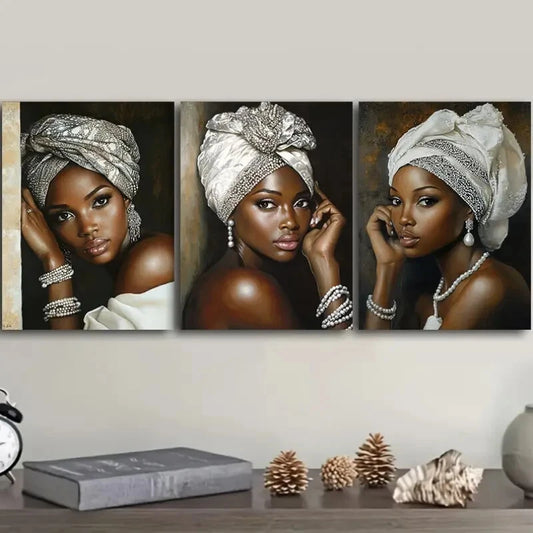 3pcs Elegant African Women Canvas Art Prints Metal Print Ready to Hang Art