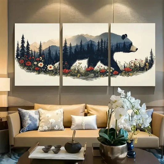 3pcs Bear-Themed Scandinavian Linocut Design Metal Print Ready to Hang Art