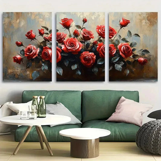 3pcs Elegant Red Rose Bouquet Metal Print Ready to Hang Art