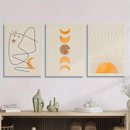 3pcs Abstract Geometric Shape Moon Sun Art Metal Print Ready to Hang Art