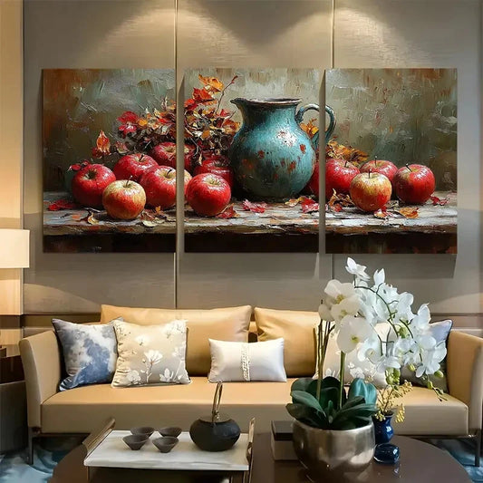 3pcs Apple Still Life with Ceramic Pitcher Design Metal Print Ready to Hang Art